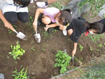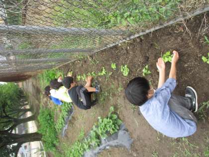 ヘチマの苗も大きく成長し、立派な本葉も生えてきました。これから、強い根を張り、どんどん成長していくのが楽しみです。