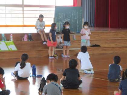 はじめてのサンサンプロジェクト♪ 公開日 2020/06/25 更新日 2020/06/25 3年生 学級会を行い、3密を避けながらできる活動を考え、みんなで「なわとび集会」をしました。それぞれが自分の好きななわとびの技を跳んで、楽しんでいました。