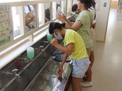 メダカのために 公開日 2020/09/01 更新日 2020/09/01 5年生 5年生で育てているメダカの水槽の水温が、この猛暑で急激に上がり、半分以上が死んでしまいました。 これを知った子供たちは、再び快適にメダカが生活できるように、水槽を洗って環境を整えていました。休み時間も全て使い、メダカのために水槽を洗って水の交換もしてくれました。 メダカの飼育を通して、協力や思いやりの気持ちも高めている子供たちでした。