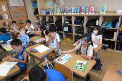 理科「音を出して調べよう」 公開日 2020/09/08 更新日 2020/09/08 3年生 理科の「音を出して調べよう」の学習では、紙笛をして音が出るときの紙の様子について調べました。音が出るときには、紙が震えている様子に気付き、トライアングルも振動で音が出ているのではないかと考え、確かめました。いろいろな物の音が出る様子に興味をもち始めました。