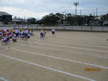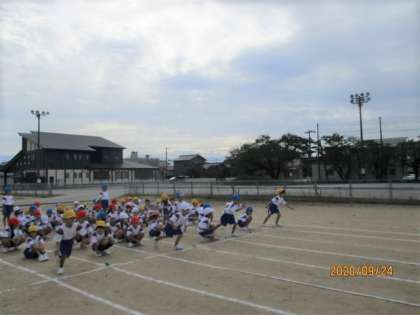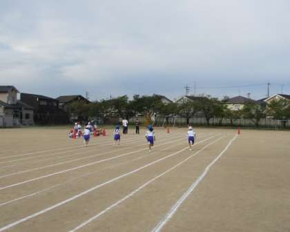 50メートルそう 公開日 2020/09/24 更新日 2020/09/24 1年生 1年生は10月13日の体育学習公開に向けて、50メートル走の練習に励んでいます。「おうちのひとにがんばって走っているところを見せたい」と子供たちは張り切っています。