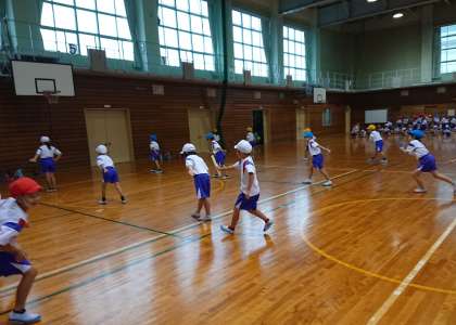 クラス対抗全員リレーに向けて、バトンパス練習を始めました。