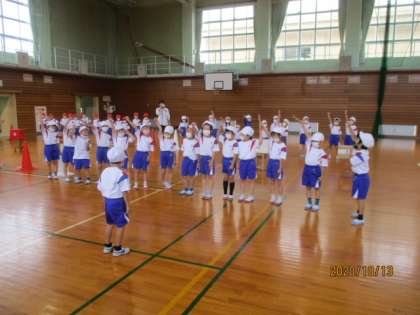 10月13日(火)、あいにくの天気のため、体育の学習を保護者の方々に参観していただくことはできませんでしたが、1年生は体育館で「まとあてマスター!」を行いました。