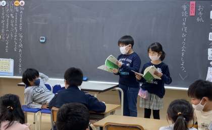 音読劇発表会をしました。 公開日 2020/11/05 更新日 2020/11/05 2年生 国語の時間に「お手紙」を学習しました。 がまくんとかえるくんの気持ちを想像しながら、どの班も登場人物になりきって発表することができました。