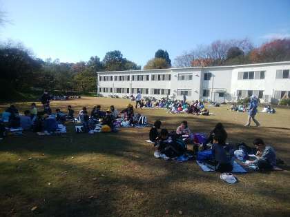 秋晴れの下、みんなでランチタイムです。