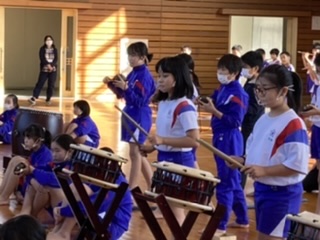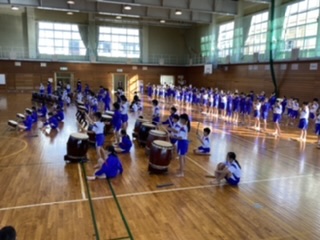 お囃子練習! 公開日 2020/11/15 更新日 2020/11/15 5年生 ヤマモト先生をお招きして、お囃子の練習に取り組みました。今日は基本的な構えや太鼓の叩き方、動き等を練習しました。よりよいものになるように一生懸命取り組む姿が見られました。