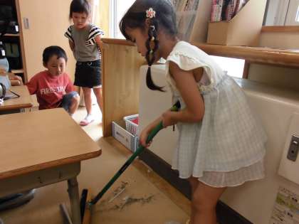 1年生 きらっと光る素敵な姿 公開日 2024/10/03 更新日 2024/10/03 1年生 昼休みが始まると、元気に遊びに行く子供たち。その中で教室の掃除ロッカーからほうきを取り出して、床の掃除を始める子がいました。「床にたくさんゴミあったから掃除しようと思って!」と進んで教室をきれいにしてくれている姿に心があたたかくなりました。