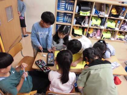 今日は、色団に分かれて気合いカードを作りました。赤白青黄の色団ごとにみんなで話し合い、大きく意気込みを書きました。「最後まで諦めず頑張ろう!」「みんなで頑張るぞ!」などオリジナルの素敵なカードに仕上がりました。