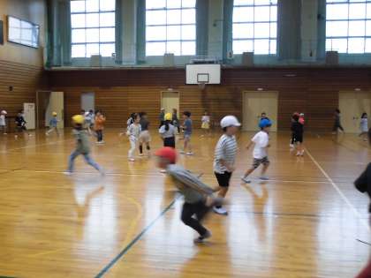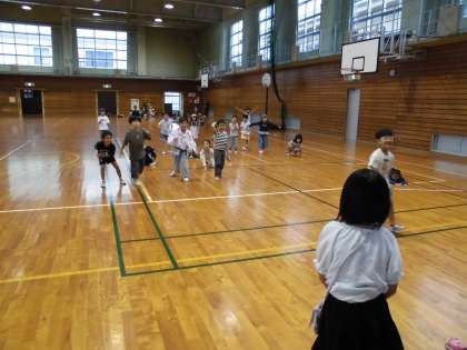 クラスの枠を越えて関わり合う子供たちの声で体育館がいっぱいになりました。