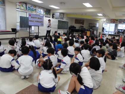 1年生 学年集会「秋の校外学習に向けて」 公開日 2024/10/23 更新日 2024/10/23 1年生 1年生の子供たちは、11月1日(金)にある校外学習を楽しみにしています。 今日は、校外学習に向けての事前学習として、学年集会を行いました。公共交通機関や施設の利用のしかたやマナーの話をしました。「みんなで電車に乗るの楽しみだね」「お弁当を公園で食べるのが楽しみだな」と話していました。 今回は、雨が降っても校外学習に行きます!本番は、晴れますように!