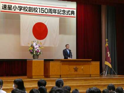 創校150周年記念式典1 公開日 2024/10/28 更新日 2024/10/28 最近の出来事 10月26日に創校150周年記念式典を行われました。 始めにお囃子プロジェクトの子供たちが、お囃子「きらんど万歳」を披露しました。 記念式典では、多くのご来賓の方から祝辞をいただき、150年の節目を共にお祝いできること、今日まで支えてくださった方々への感謝の気持ちがいっぱいになりました。
