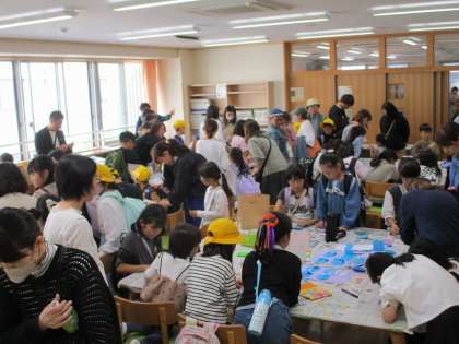 創校150周年記念イベント2 公開日 2024/10/29 更新日 2024/10/29 最近の出来事 お話の会のみなさんによる「折り紙・クラフト」は子供たちでいっぱいで、手作り缶バッジが大人気でした。また、5年児童が総合的な学習の時間の「速星校区のいま・むかし」について調査中の掲示やパワーポイントによる発表、そして6年児童のお祝いイラスト掲示のコーナーもありました。