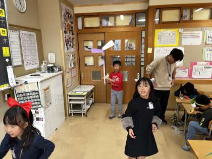 2年生 係活動 お楽しみ係 公開日 2024/11/01 更新日 2024/11/01 2年生 お楽しみ係がハロウィンパーティを企画しました。みんなで仮装してくじ引きやダンス、折り紙での工作を楽しみました。