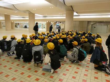 駅の地下で説明を聞き、班別の活動へうつりました。