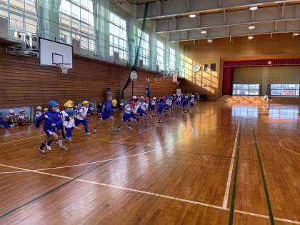 体育の時間にシャトルランに挑戦しました。1学期の記録よりも1回でも多くなるようにがんばっていました。