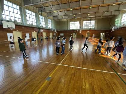 学級会でチームの決め方を話し合い、集いの時間にドッジボールを行いました。