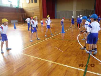 4年生 体育科 タグラグビー1 公開日 2024/11/26 更新日 2024/11/26 4年生 タグラグビーでは、よりよいプレーができるように決まりを作ったり、チームでアドバイスし合ったりしながら取り組みました。片付けも丁寧に行っていました。