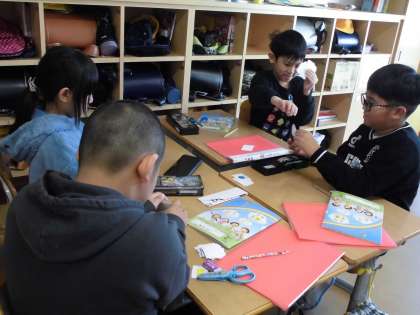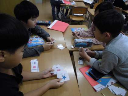 ピクチャーカードを使って、楽しく形の言い方を覚えました。