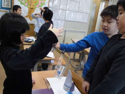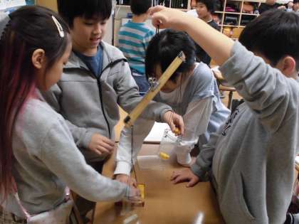積み木のいくつ分の重さを調べ、重さを比較しました。