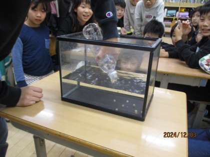 4年生 サクラマス飼育体験 公開日 2024/12/06 更新日 2024/12/06 4年生 サクラマスの生態について話を聞いたり、飼育方法を教えていただいたりしました。これから孵化に向けて育ちを観察していくのが楽しみです。