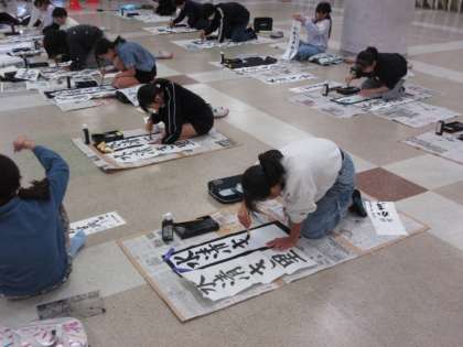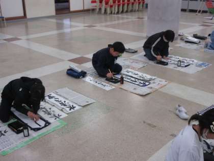 5年生の書写の授業では書き初めの練習に取り組んでいます。文字の大きさや形に気を付けて丁寧に書いています。