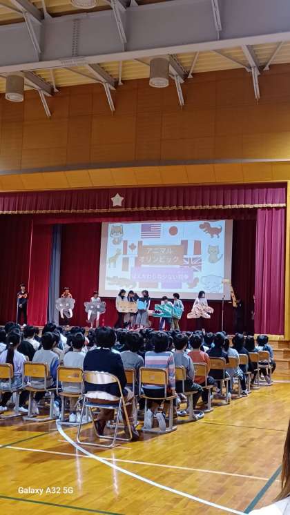 保健委員会の皆さんによる、歯のアニマルオリンピックが開催されました。動物と人間を比較することにより、子どもたちに歯の知識を分かりやすく興味深い内容で伝えてくれました。
