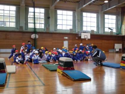 1年生 体育科 跳び箱遊びをしよう 公開日 2024/12/21 更新日 2024/12/21 1年生 1年生は、体育の時間を楽しみにしている子がたくさんいます。 今日は、跳び箱遊びを行いました。最初に跳び箱を跳ぶときにつながる動きが入った動物ジャンプにチャレンジ!かえるやあしか、うさぎになりきってとんでいました。 そしていよいよ跳び箱にチャレンジ!まだまだ難しいようですが、一生懸命チャレンジしていました。