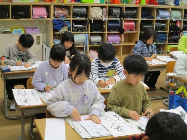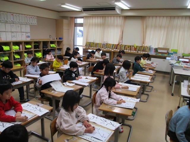 書き初め大会1 公開日 2025/01/08 更新日 2025/01/08 最近の出来事 1、2、3年生は教室で書き初め大会を行いました。 2学期末の書写の時間や冬休みの練習の成果を発揮しようと、書き初め大会では真剣に取り組みました。