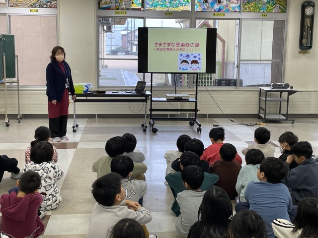 2年生 学級活動 保健指導 公開日 2025/01/14 更新日 2025/01/14 2年生 2年生は、養護教諭から冬に流行する病気の予防について詳しく教えてもらいました。手の洗い方や気持ち悪くなったときの対処法等について学びました。