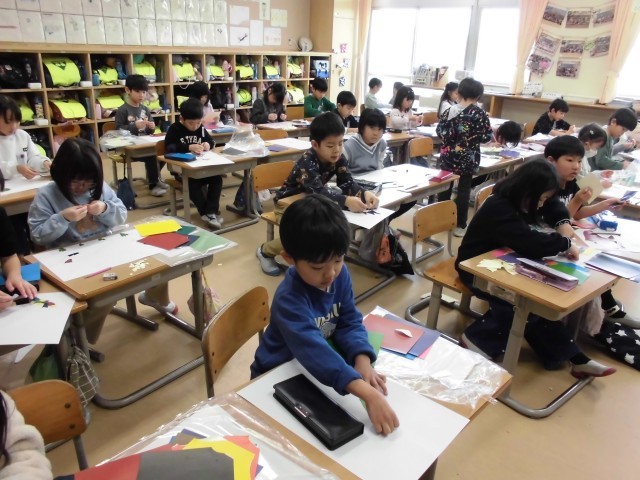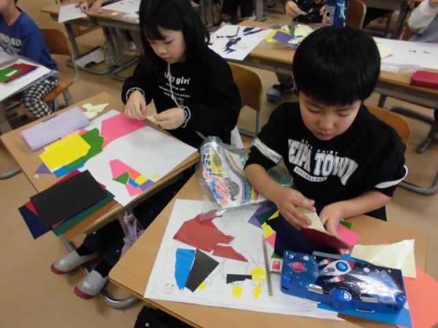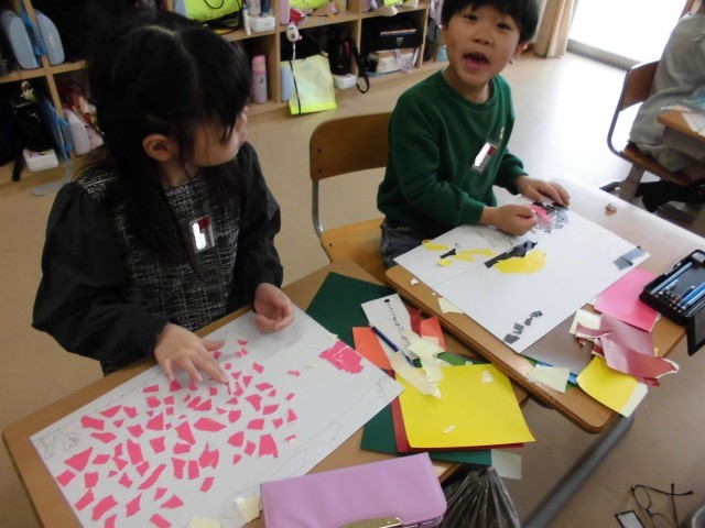 1年生の図画工作科の時間では、「ちぎってはってかみはんが!」の学習を行っています。