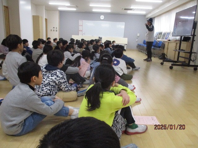 学年集会をしました。スキー学習の流れを確認したり、使う道具を実際に見たりしました。来週が楽しみです。