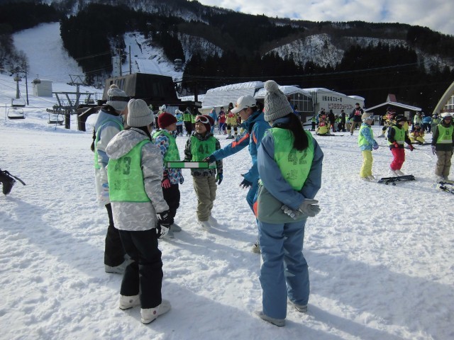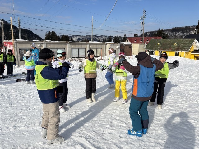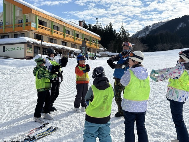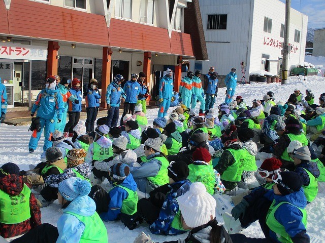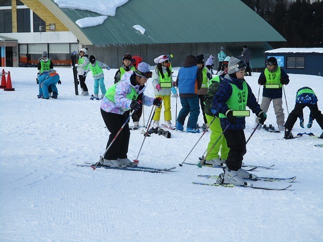 先日、極楽坂スキー場でスキー教室が行われました。それぞれの班が担当のインストラクターと一緒にスキー上達のために頑張っていました。