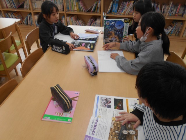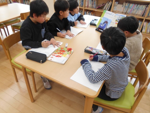 図書室でロボットについて書かれた本を探し、あったら助かるロボットについてノートにまとめました。