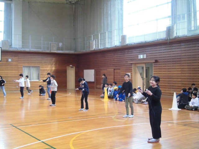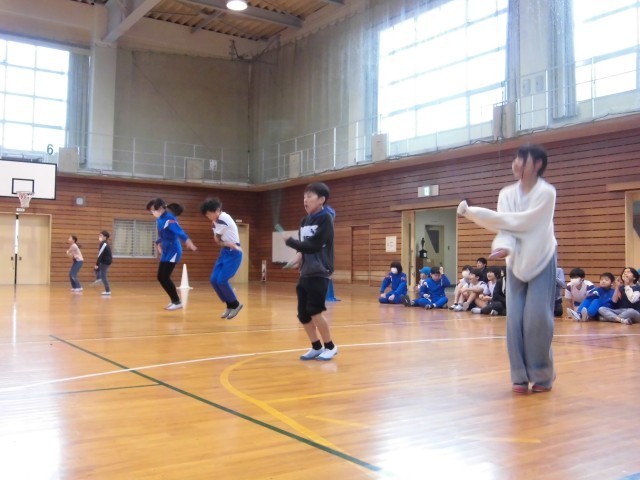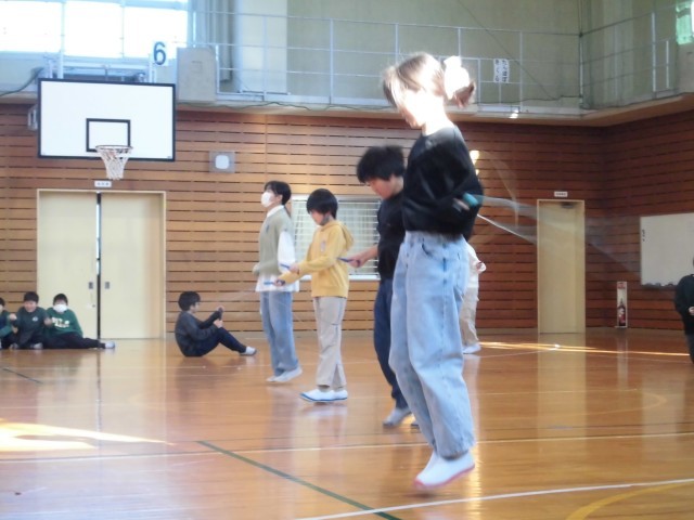 1月21日から24日に、スポーツ委員会が企画する校内なわとび大会がありました。前跳び、後ろ跳び、あや跳び、二重跳びに挑戦し、1回でも多く跳ぼうとがんばっていました。「がんばれ」「できるよ」等、仲間を応援する姿もたくさん見られました。