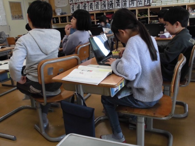 総合的な学習の時間に調べ、まとめている場所や物について、クロムブックを用いて文章にしました。
