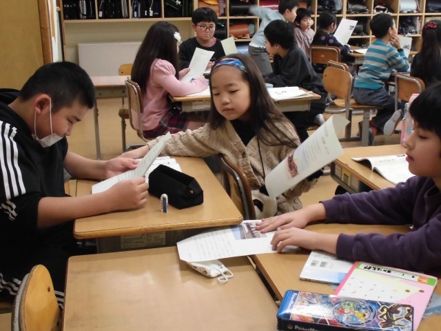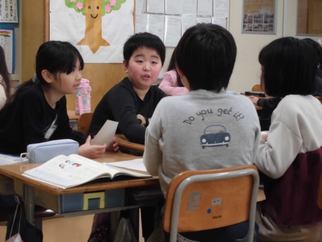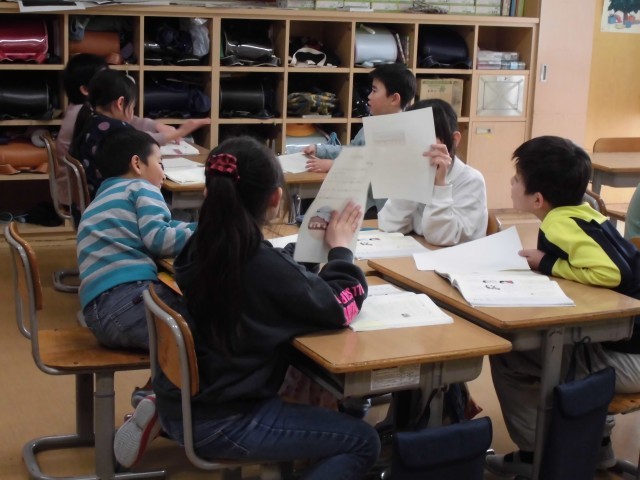 自分の紹介文を、友達と読み合い、感想を伝え合いました。
