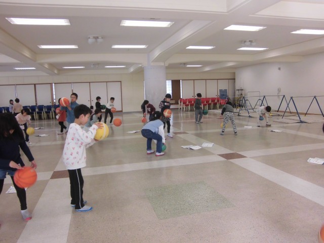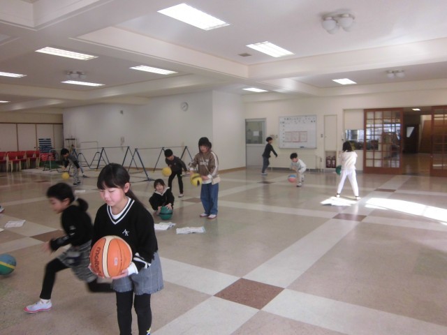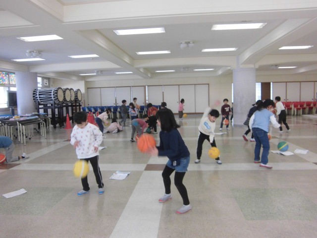 「わらべうた」の学習をしています。今日は、みんなで「あんたがたどこさ」を歌いながら、ボールをついて遊ぶ遊びを楽しみました。