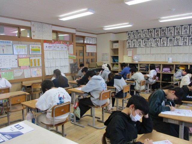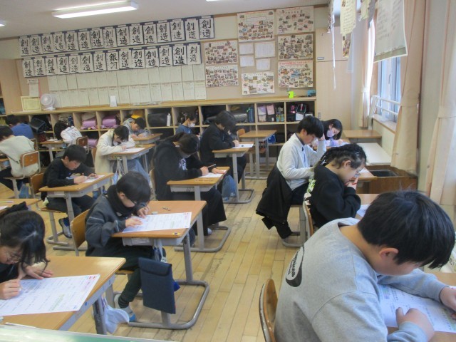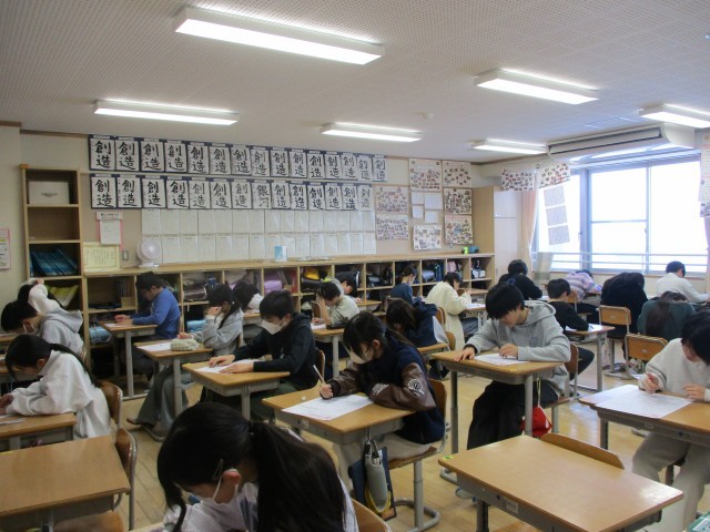 三学期の学習はこれまでの復習や新しい単元を進めるなど、学習面も忙しく過ごしています。算数は六年間で最後のカラーテストになりました。集中して解いています。