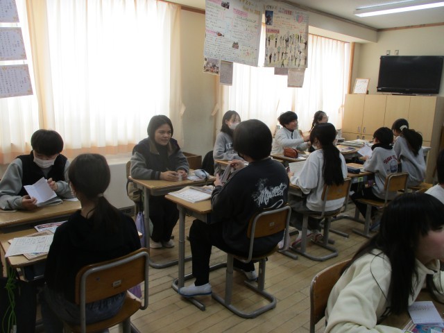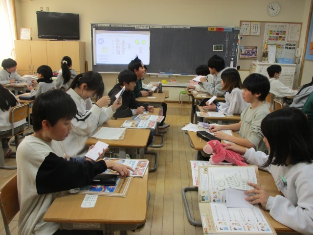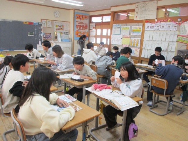 外国語では小学校生活の一番の思い出を伝える表現を学んでいます。立山登山や運動会、金沢の校外学習など、”my best memory”を一冊の絵本にしました。その本を用いてクイズ大会を行っている様子です。英語を一生懸命使おうと楽しく取り組んでいました。