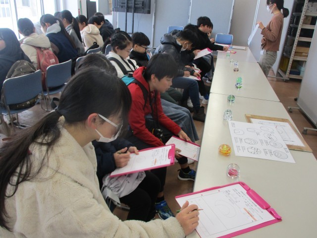 泡を入れたり、マーブル柄にしたり、らせん模様にしたり…正解に一つだけのペーパーウェイトになりました。