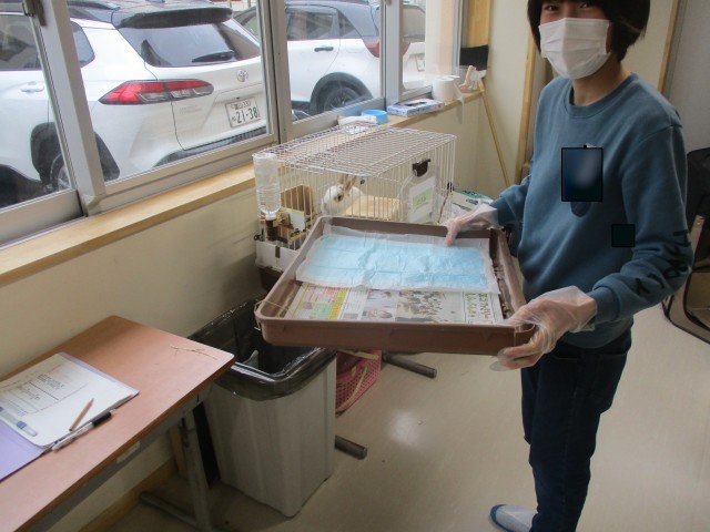 今日もウサギのお世話を行いました。おうちがきれいになってウサギも嬉しそう!