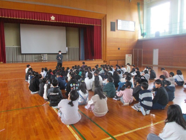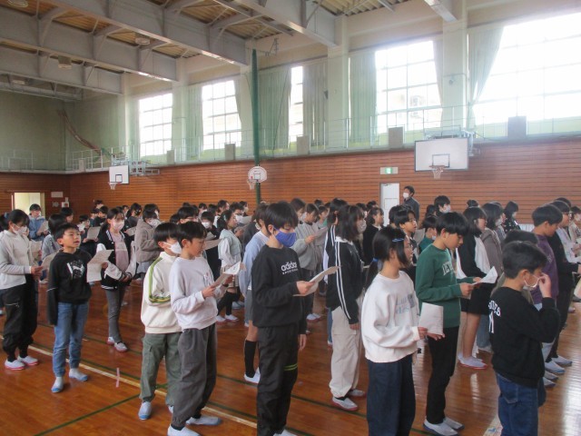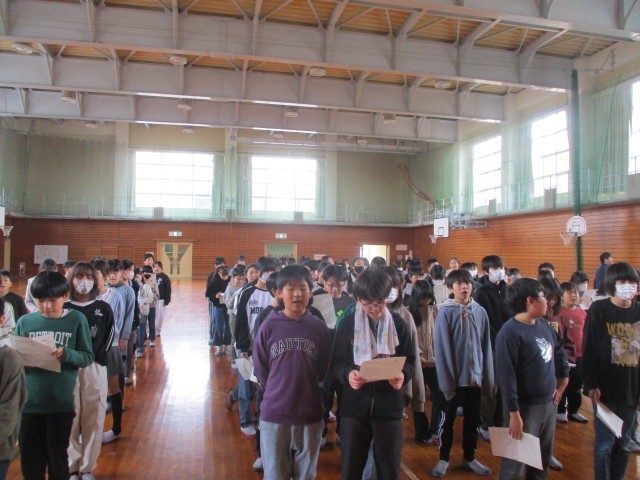 5年生みんなで合唱練習をしました。6年生を祝うために大きな声で練習していました。