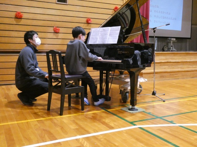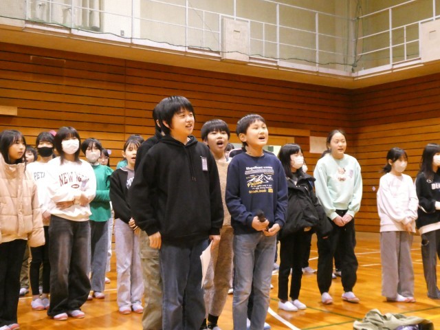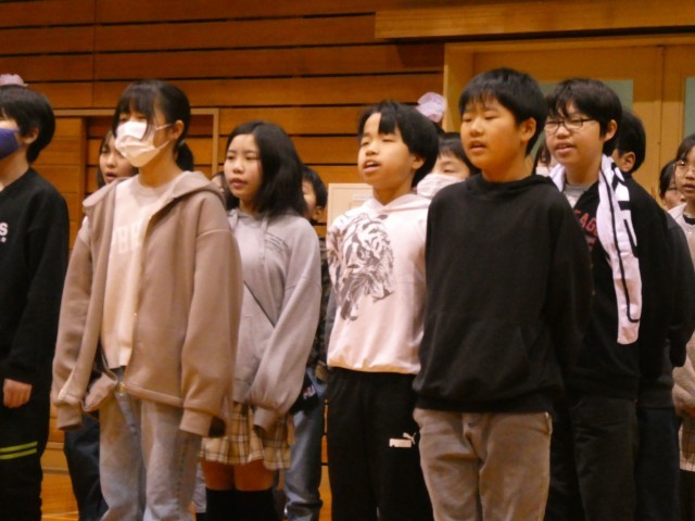 最後は1~5年生が「あなたにありがとう」を合唱し、歌声を6年生に届けました。下学年のソプラノパートと一緒に素敵な歌声が響きました。