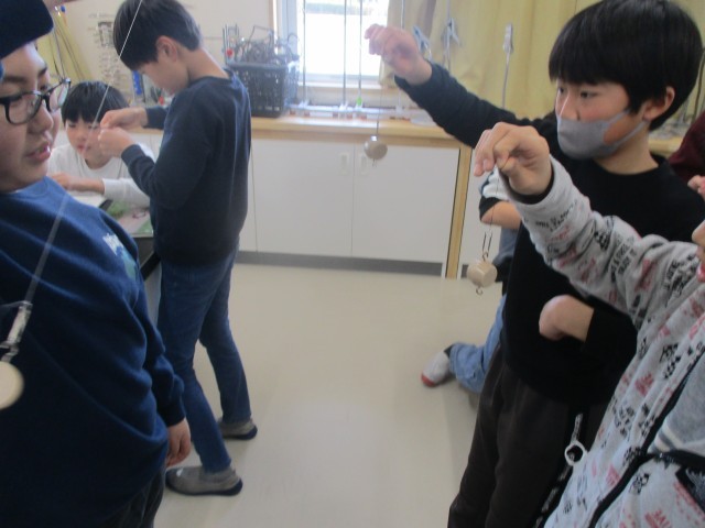 理科の時間ではふりこの学習をしています。ふりこの1往復にかかる時間を変えるためにどんな条件を変えればよいか考えました。