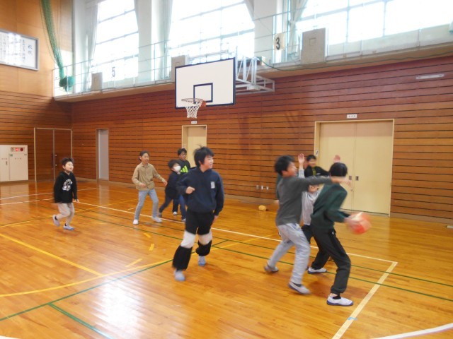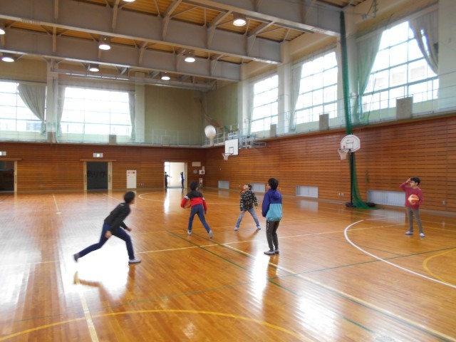 今日のマイタイムは体育館が使える日でした。バスケットボールに取り組み、朝からたくさん身体を動かしていました。