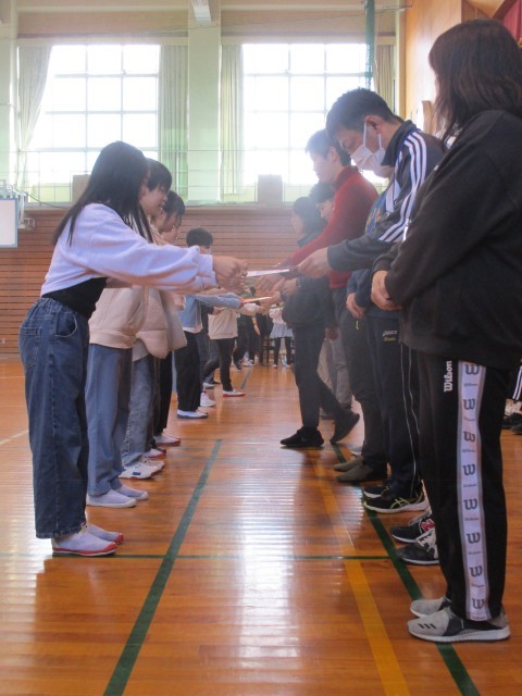 これまでの感謝を込めて先生方に歌とメッセージカードをプレゼントしました。