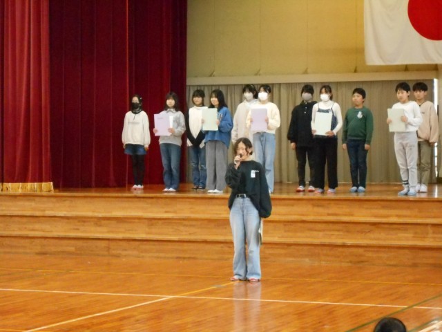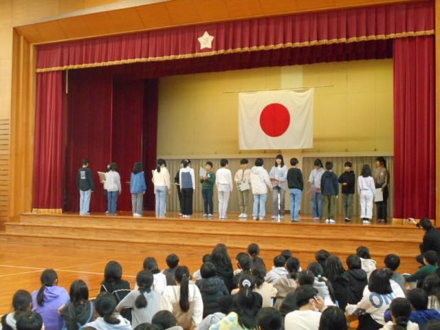 最後は委員長から委員会のファイルを引き継ぎ、5年生の代表が話しました。司会も途中から5年生に交代して式が行われました。