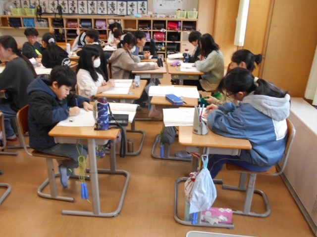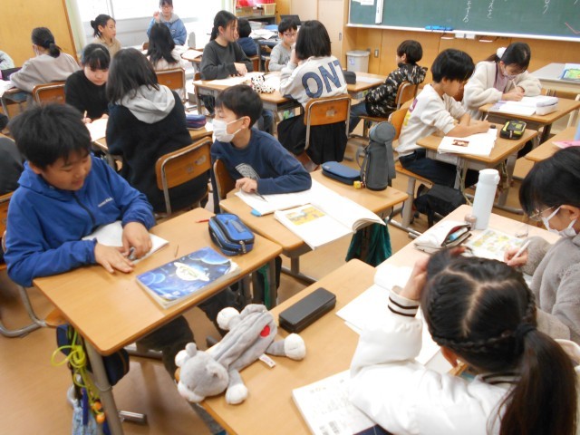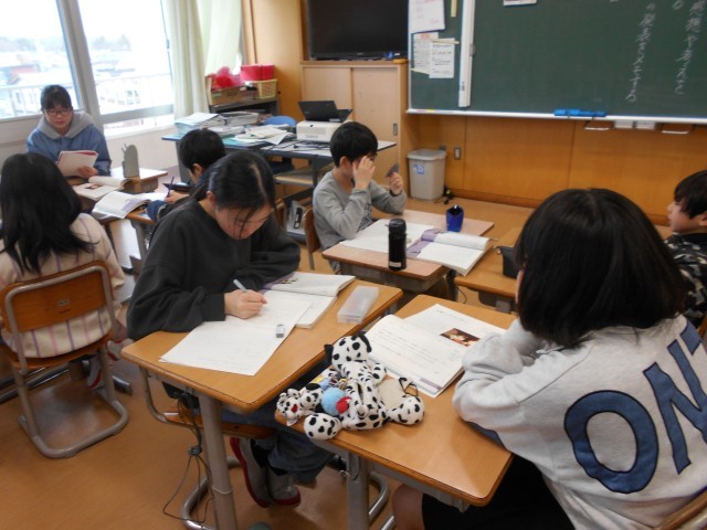 国語では、グループで話し合う活動をしました。自分の考えを伝えたり友達の考えを聞いて感想をノートに書いていました。