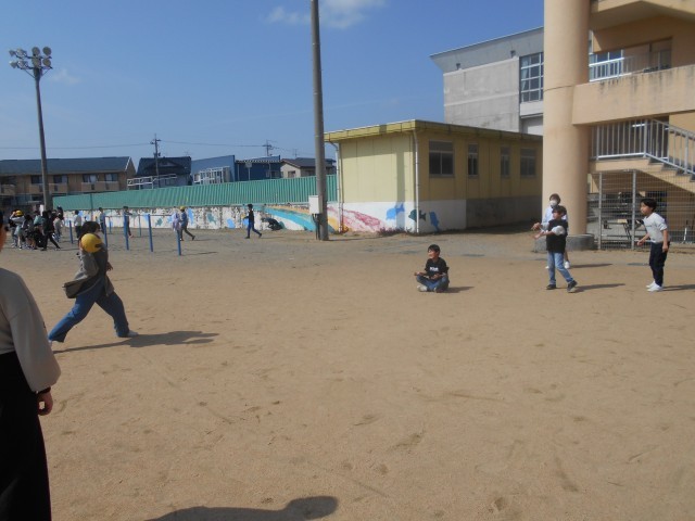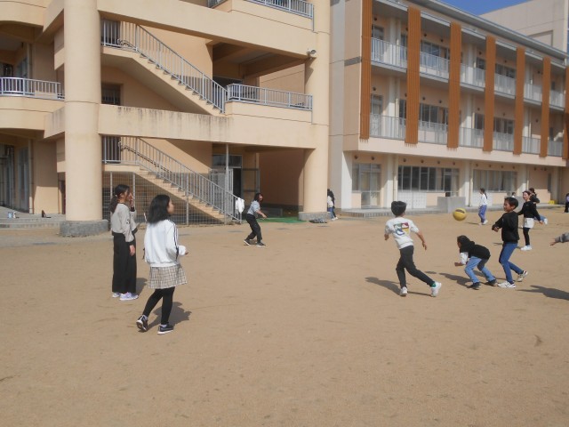 集いの時間ではクラスで外に出て好きなように身体を動かしました。