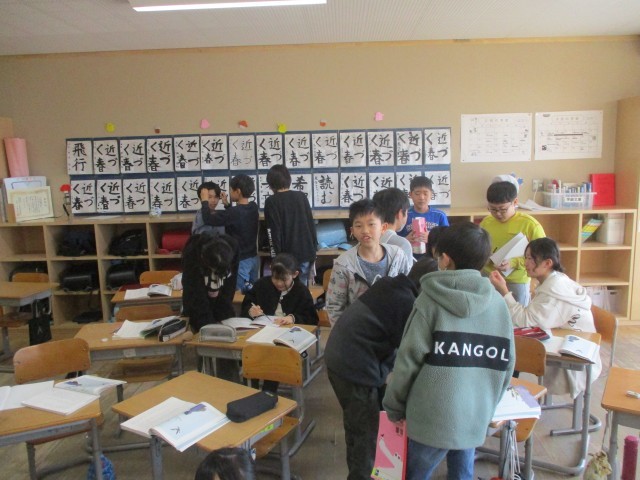友達と考えを話し合う活動をしました。席を自由にまわってたくさん意見を交換しました。